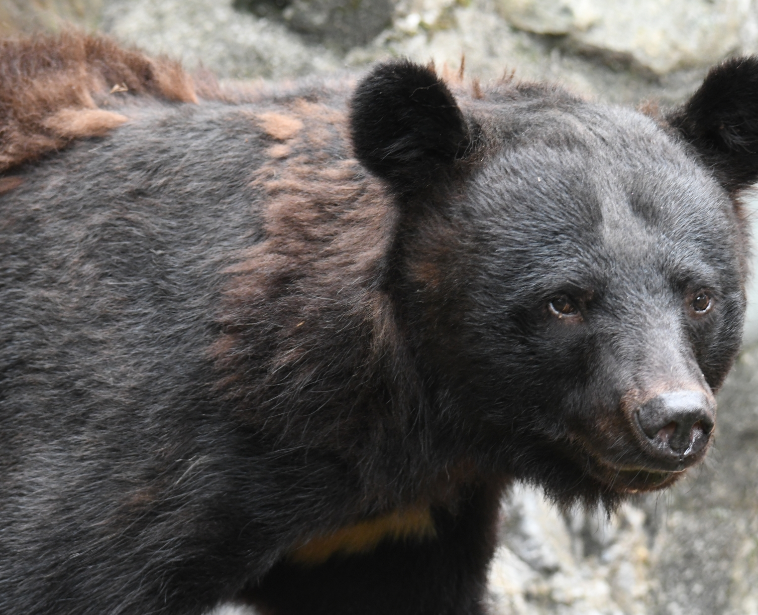 「ツキノワグマ」は、胸に三日月形の白い模様“月の輪”がある個体が多く、体重はオスで 80〜120kg前後と、大きさにはかなりの違いがある。