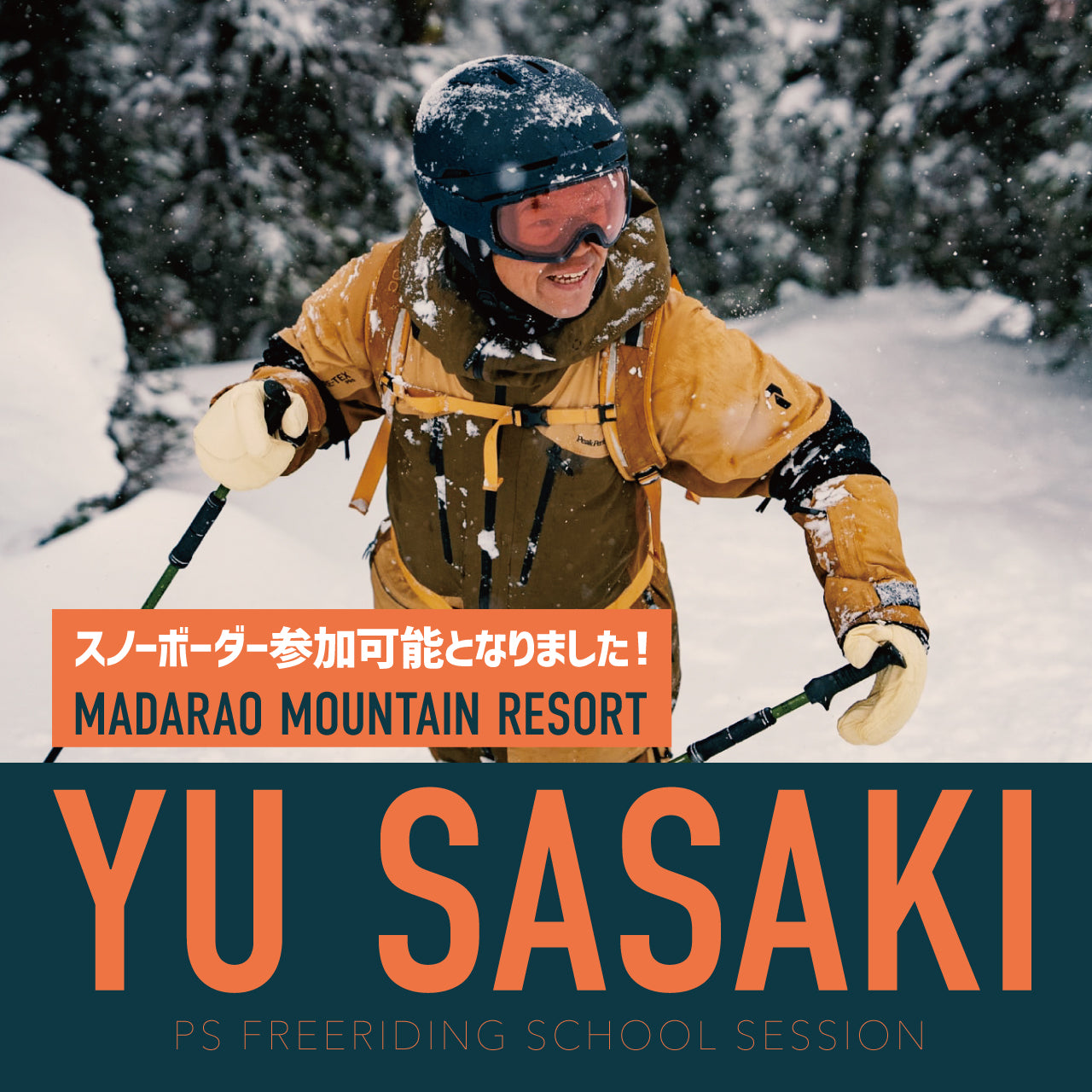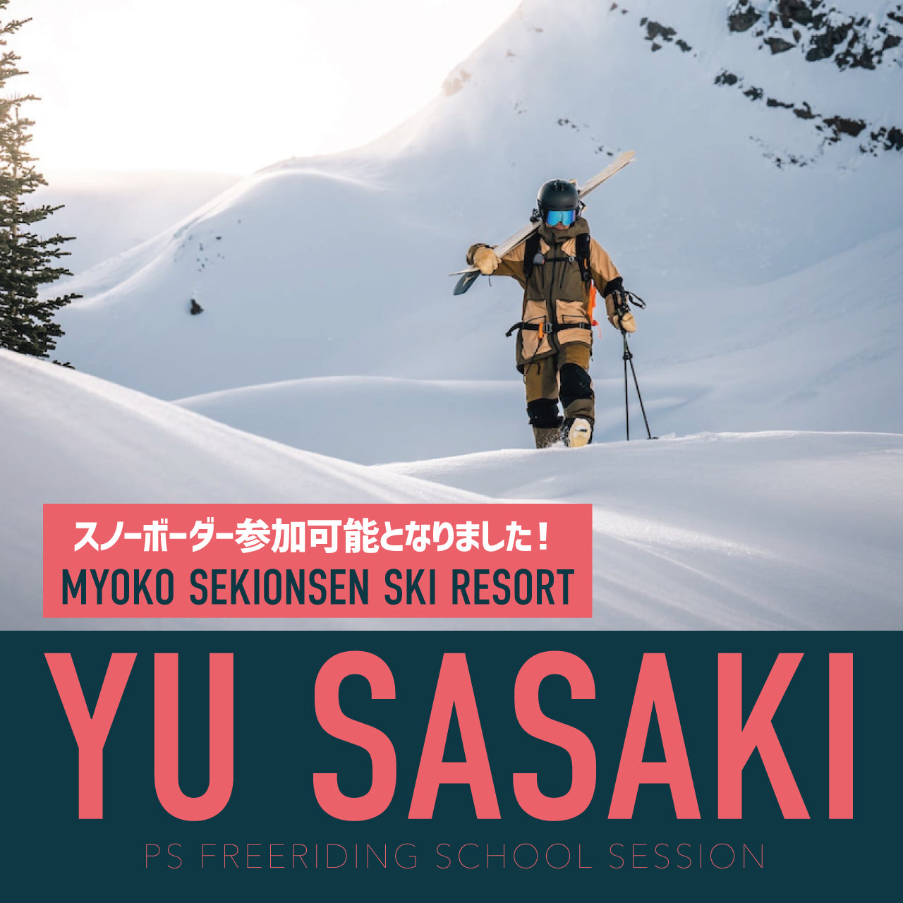 カナダ、レベルストーク在住のプロスキーヤー佐々木悠によるフリーライドスクールセッションが昨年に引き続き開催される。日時は2025年1/27-28が斑尾高原スキー場、1月29日-30日・2月15日-16日がアライリゾート、2/12-13が関温泉スキー場だ。