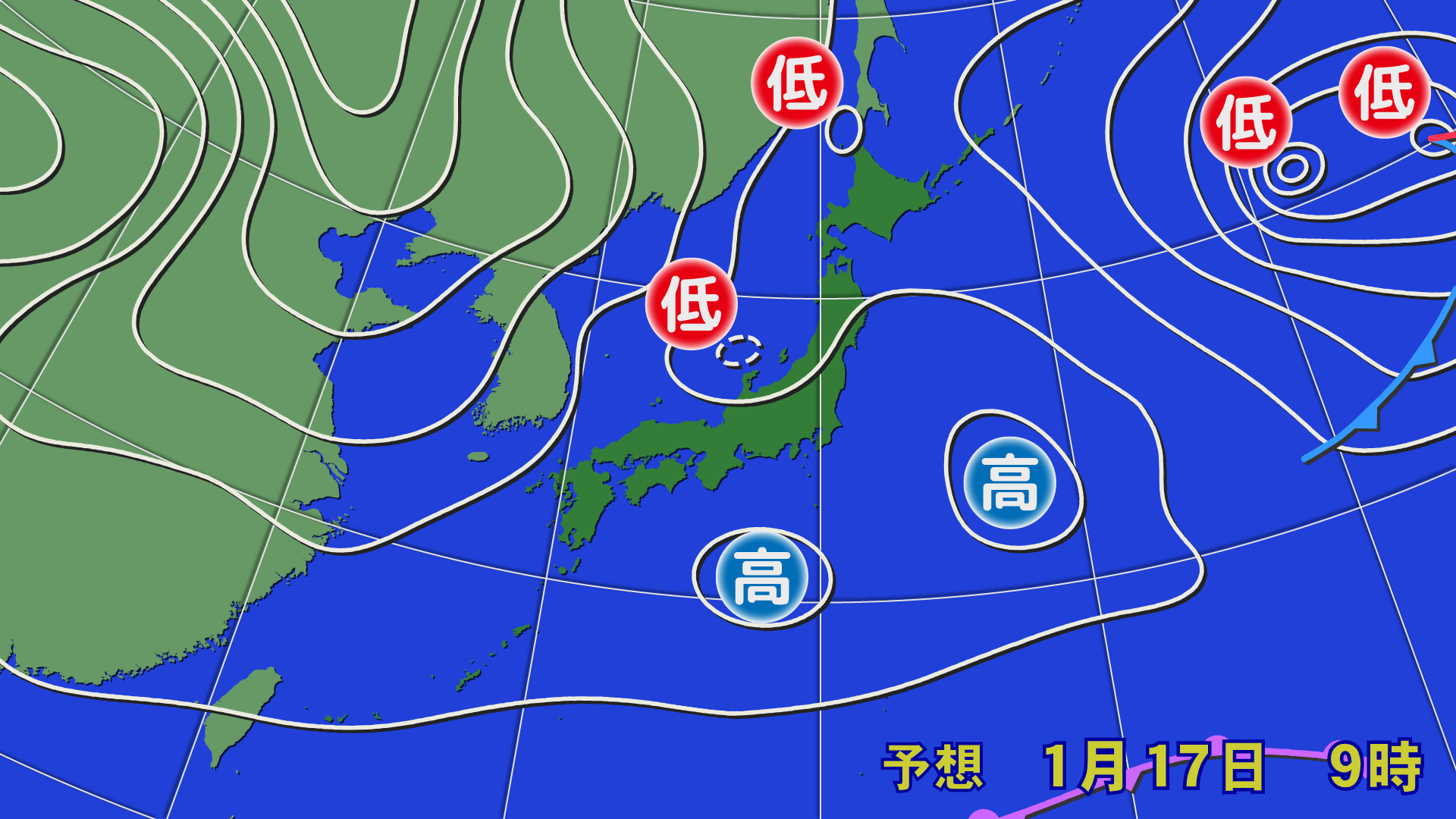 Sneen vil falde fra natten til den 17. til de tidlige morgentimer på grund af påvirkningen fra et vintertrykmønster og lavtryk. Der vil sandsynligvis være nogle områder med kraftig snefald lokalt. Stærke nordenvinde vil fortsat være udbredt i løbet af dagen, hvilket vil forårsage sne og snestorme på den Japanske Hav-side. Vær venligst nøje opmærksom på de seneste vejroplysninger
