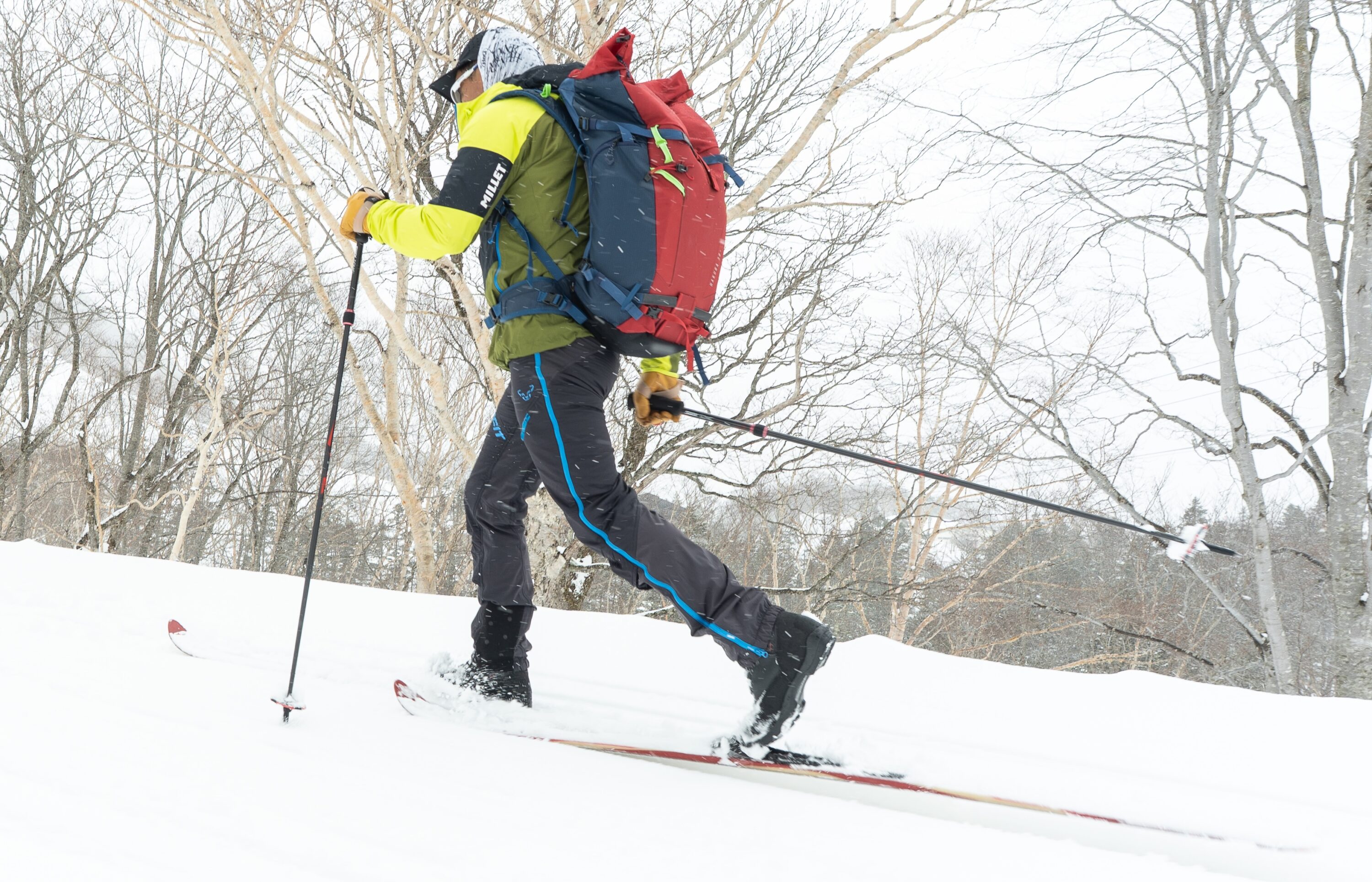 In particular, poles with a grip that is easy to hold when walking and a powder basket with a wide range of movement are ideal. ONE WAY's BC VARIO, designed specifically for BC cross-country, allows for smooth pole work and allows you to push firmly in the direction of travel all the way to the end. It features a BC grip that extends to the bottom, which is useful when traversing.