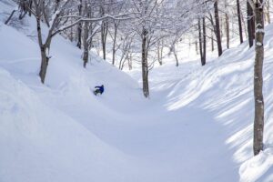 The setting is Rusutsu Resort in Hokkaido, where two freeskiers, Hirofumi Ishikawa and Hidemitsu Okada, will provide guidance on how to enjoy the natural terrain and tips on riding techniques