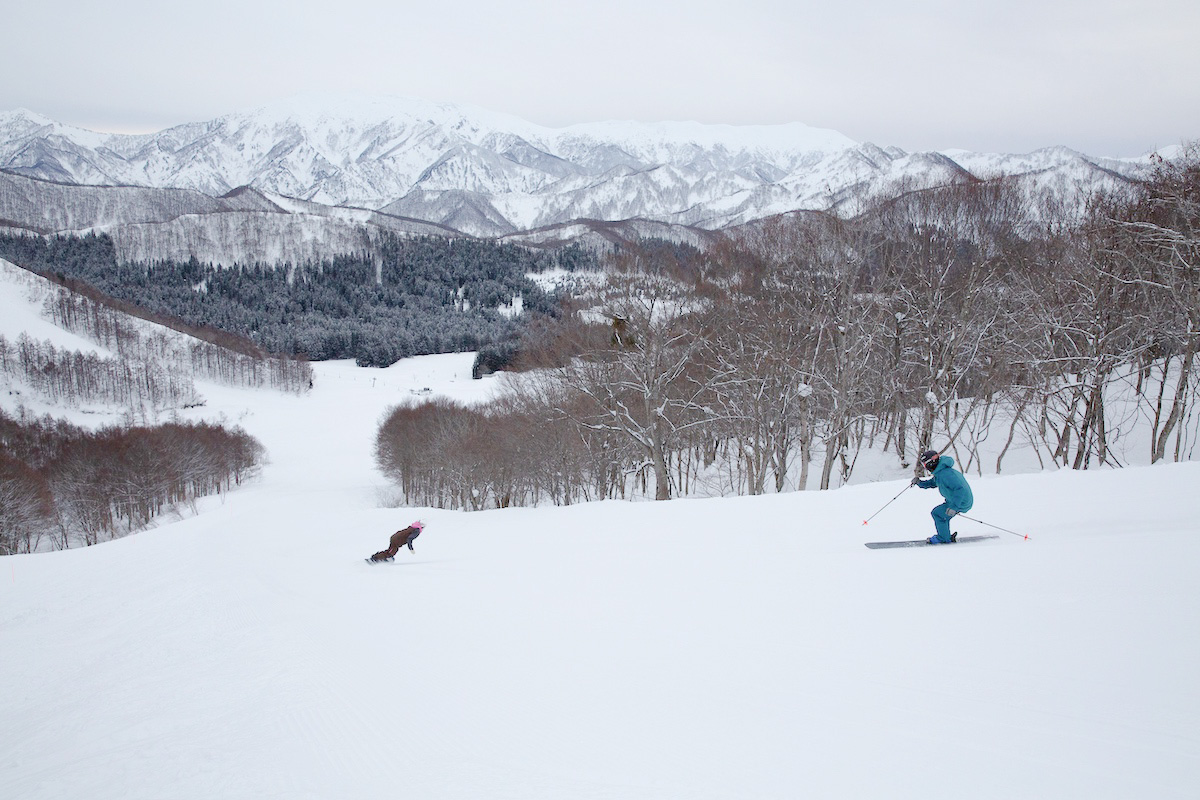 "The groomed courses are well maintained, so you're sure to enjoy carving whenever you come! There are plenty of steep and gentle slopes, and the courses are wide, so it's great fun for snowboarders. It's easy to see why so many young people come to this ski resort. It's also a great place for practice," says Kitahara Ayumi.