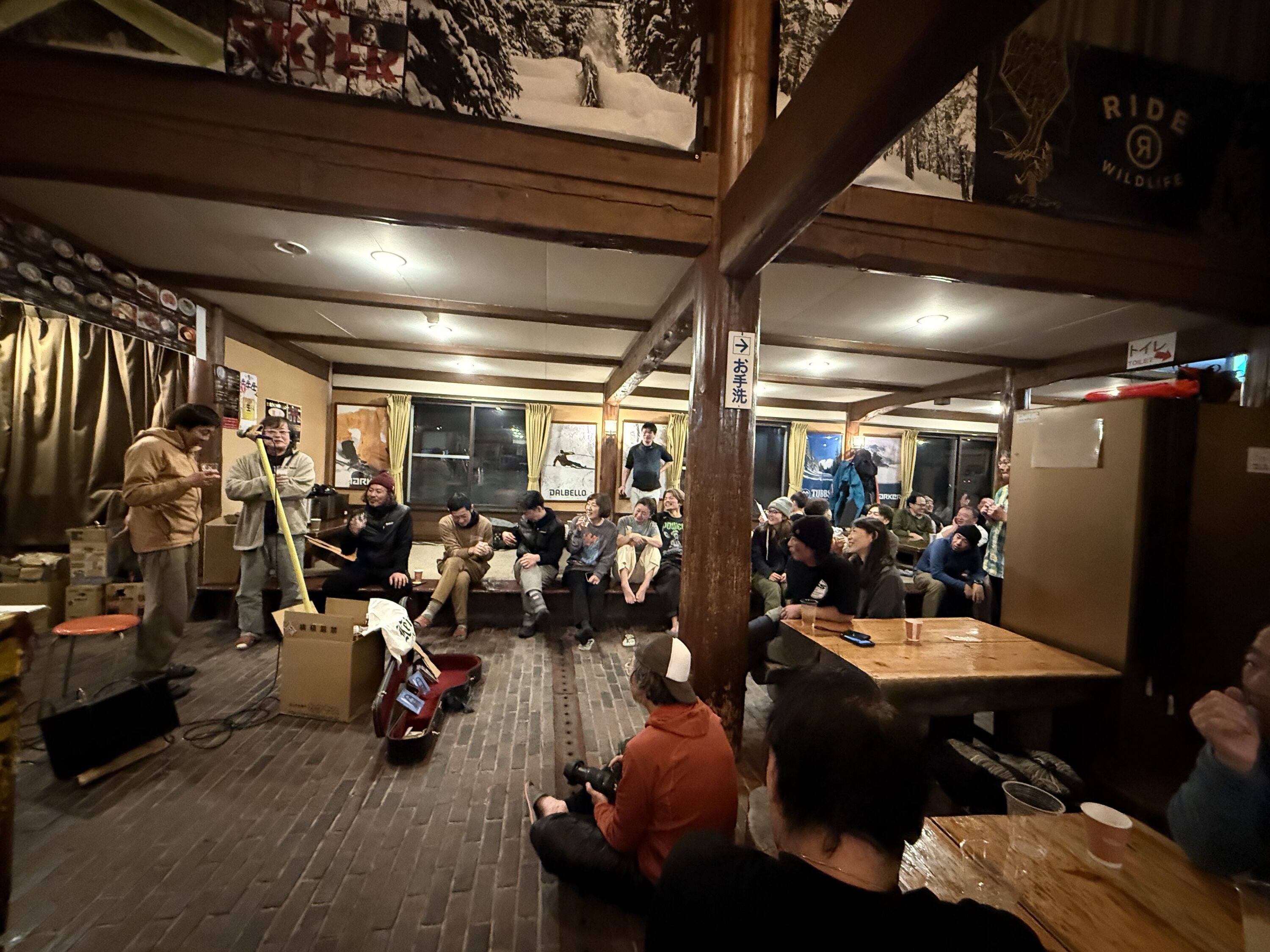 70名を超える参加者を受け入れる規模は、和田小屋をフルに使い切る人数。これほど多様なジャンルの滑り手が集まってくるのは、bottomlineが単なるチューンナップ・ギア販売店ではなく、コミュニティハブとして機能している証だ。