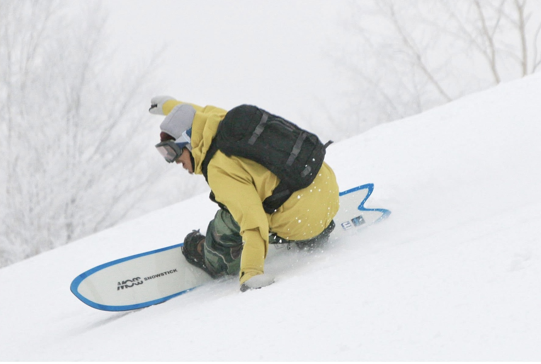MOSS SNOWSTICK開発兼メインライダー。独自のスノーサーフスタイルに磨きがかかり、波乗りの感覚を雪山で再現する滑りは、多くのライダーに影響を与えている。スノーサーフィンの本質を体現する存在。