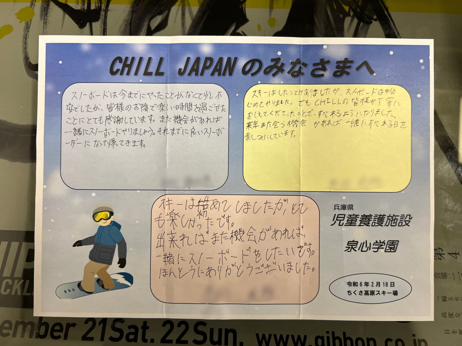 僕らも非常に胸を打たれたし、本当に嬉しかったですね。CHILLの体験だけによるかはわかりませんが、スノーボードにはそんなチカラがあるんだと信じています。
