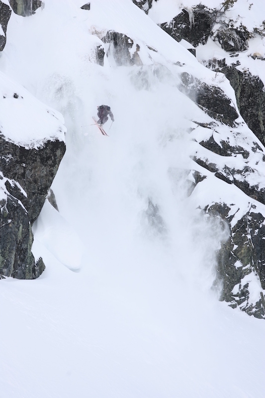 その頃、ナショナルチームに入って1年目(1995)かな、大先輩の山崎修さんにK2の関係で海外に撮影に誘ってもらって。USAワイオミング州のジャクソンホールに連れていってもらったんです。ゲストでグレン・プレイクやダグ・クームスらも来ていた。山に上がって、みんなで撮影場所までフリーランで流していこうってなったら……いきなりクリフなんですよ(笑)! 僕、それが人生初のクリフで……。
