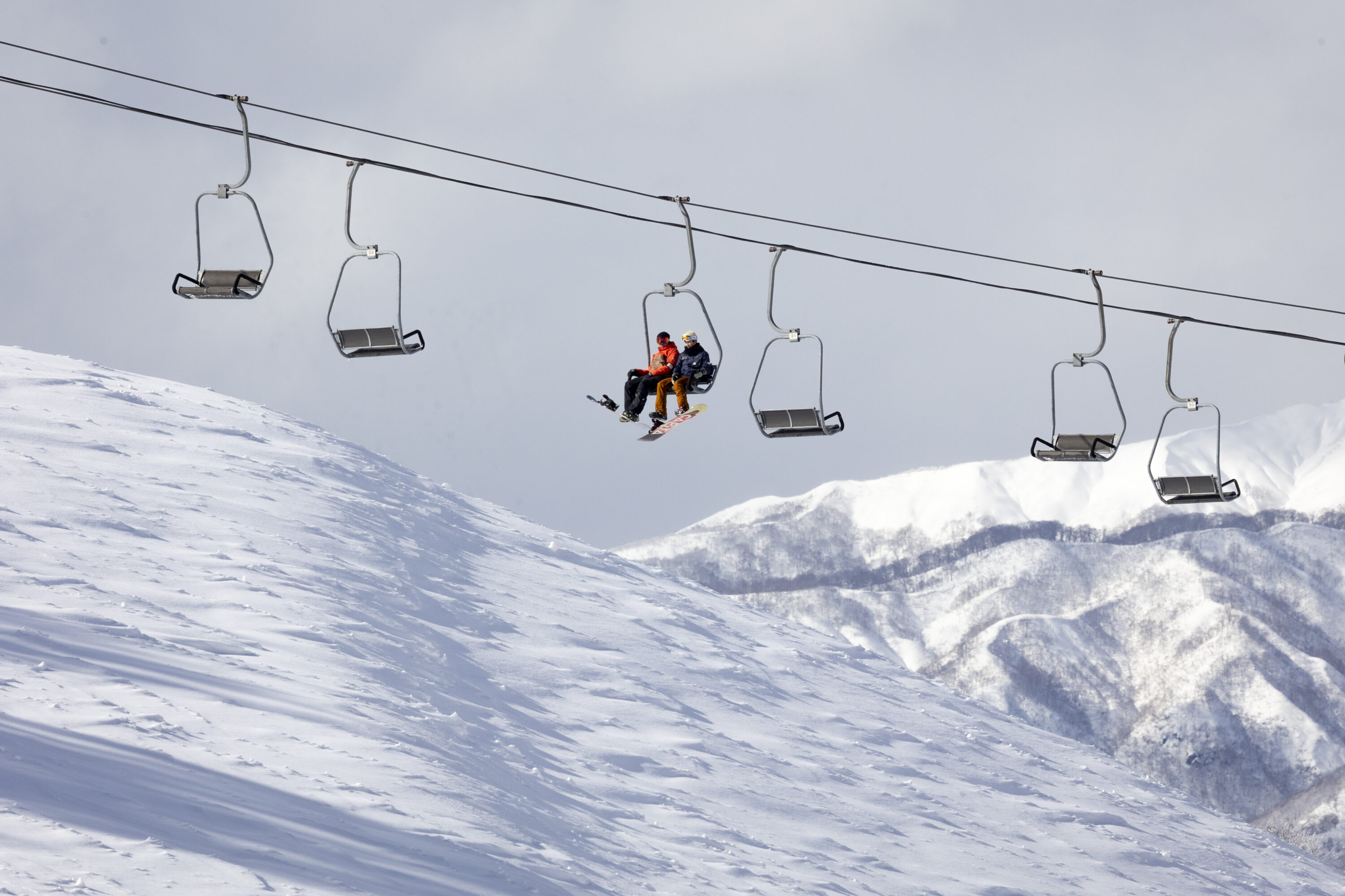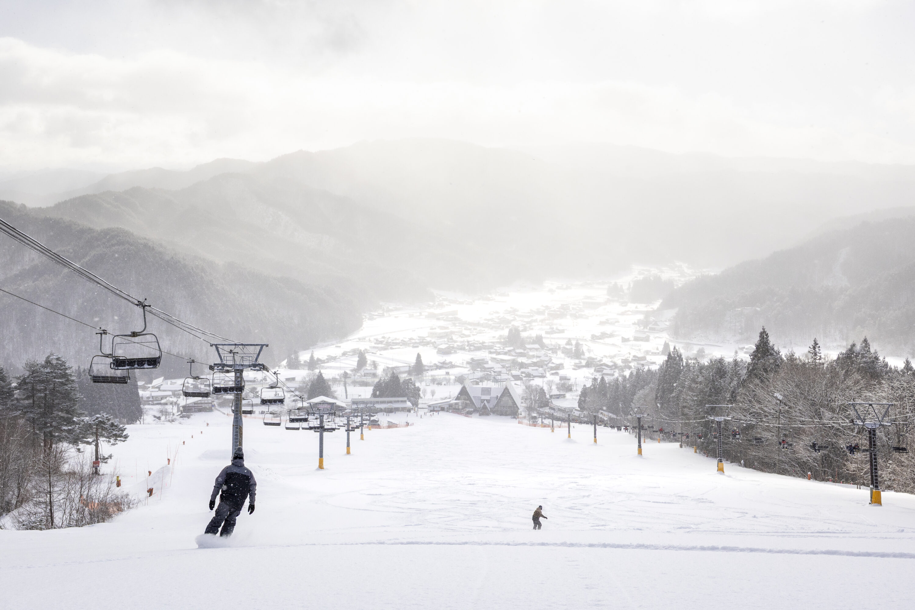 途中、20代の頃から30年以上、愛知から通い続けているというスノーボーダーのご夫婦に出会った。彼らが語るひだ流葉の贅沢さは、やはり「絶景」と「パウダー」。ここで滑ることだけを目的に、道中の寄り道は一切なし。シーズン中、1日でも多く滑るため、食事はカップ麺で済ますこともあるという。スキー場自慢のゲレ食を我慢してもしたい贅沢が、ここにはある。