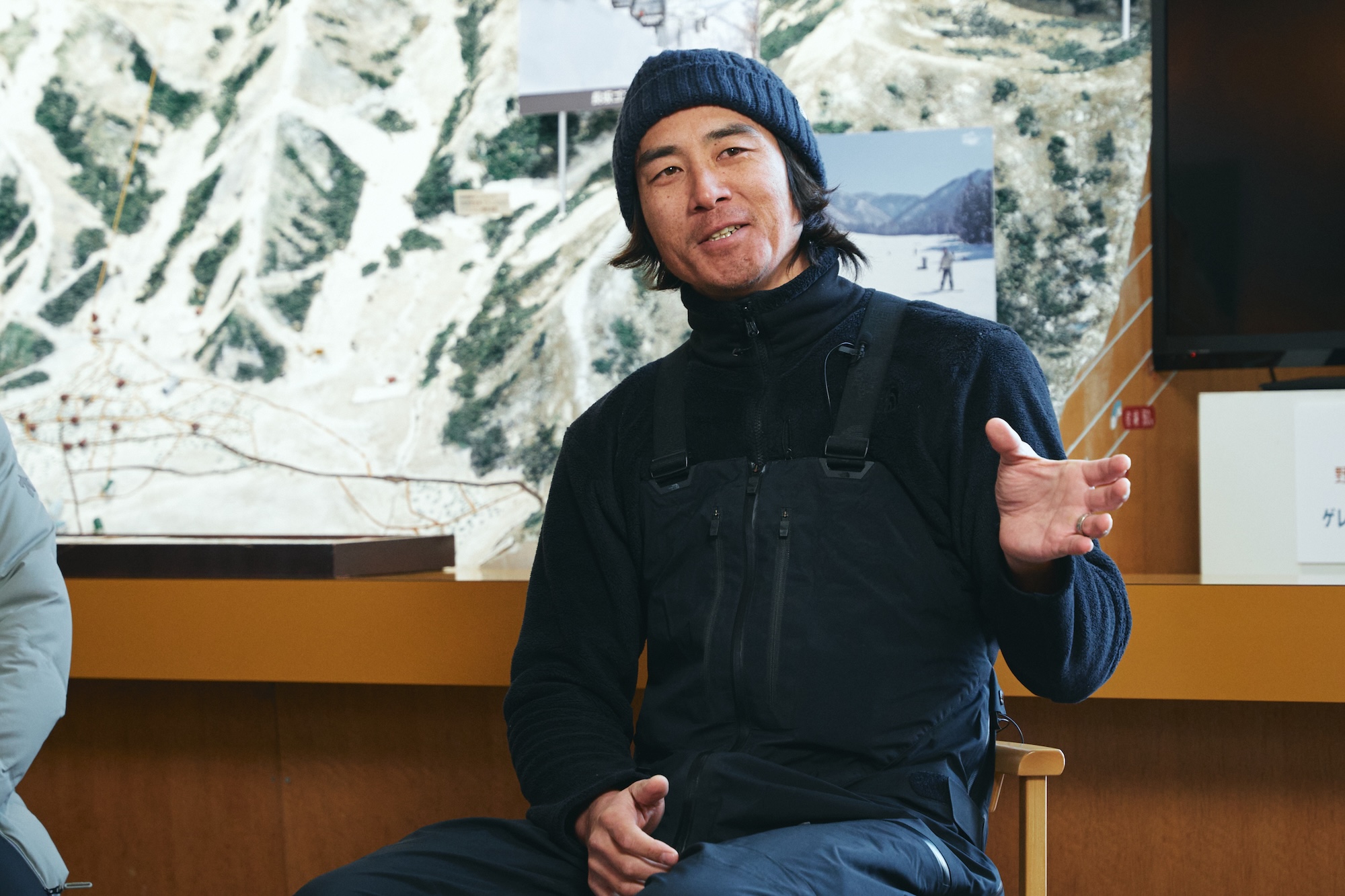 中:上野雄大 1981年生。現役時代はスキークロス、ハーフパイプの選手として活躍。一戦を退いた後は、野沢温泉にフリースタイルスキーと自転車の専門店「COMPASS HOUSE」を開き、アクティビティの普及を進める。2025年からは野沢温泉村村長に就任した。