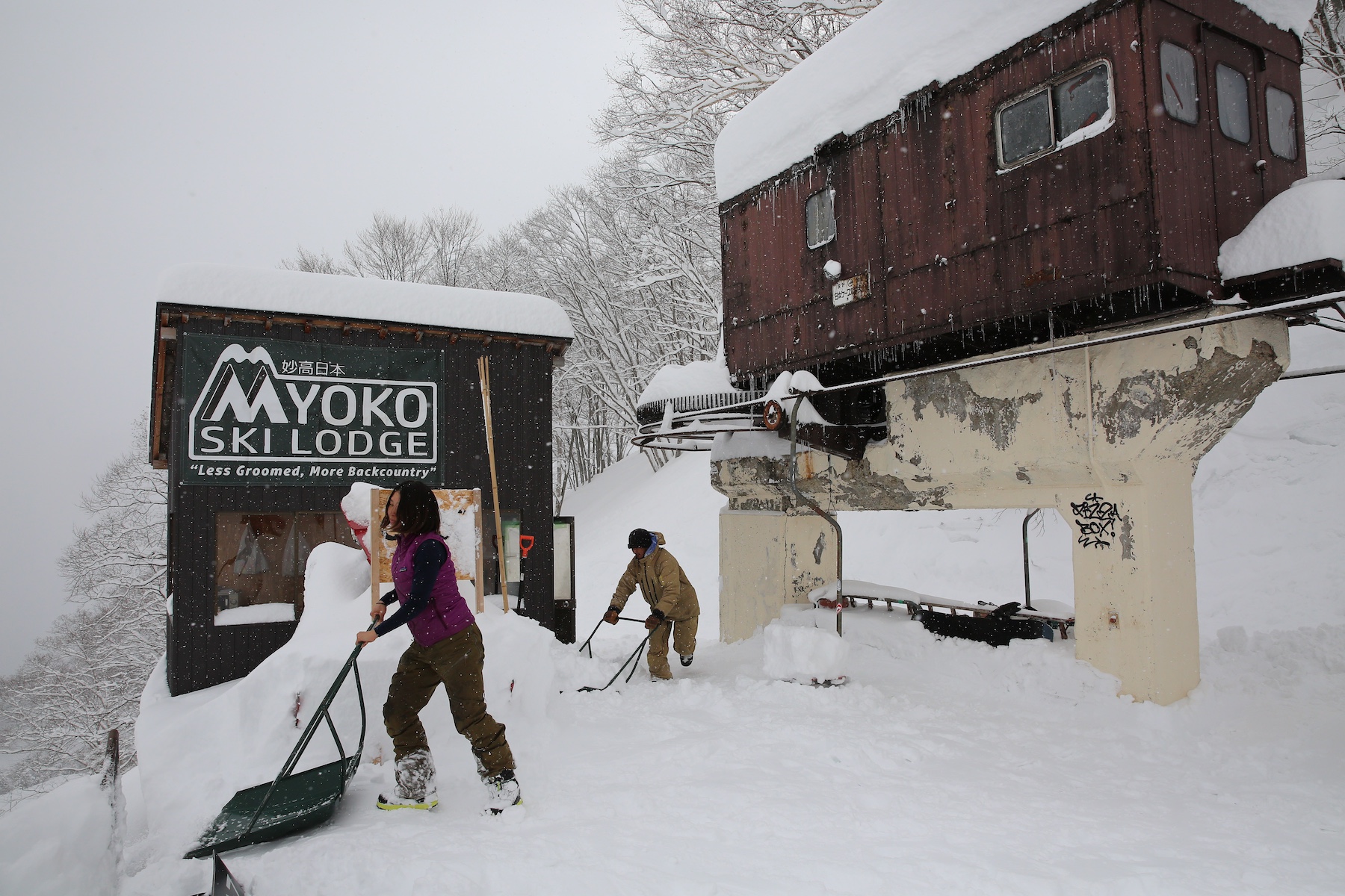 대표이사인 이노우에 미키오씨는 종종 자리를 서서 돌아올 때마다 이렇게 말했다. 리프트 승강장 옆에 있는 사무소에는 화장실이 병설되어 있어 확실히 손님이 출입한다. 90%가 외국인이다. 스키어와 테두리의 비율은 거의 반반. 게다가 "미끄러지는"구미인이 많다. 그들이 들어올 때마다 영어로 인사하고 화장실에 안내한다. 좀처럼 인터뷰가 진행되지 않는다.