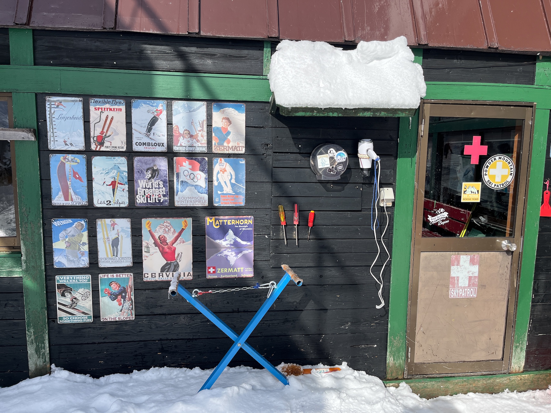 사무실에 들어서면 백인 남자가 발을 멈추고 "이것, 내 집에도 있어"라고 기쁘게 가리키고 있다. 사무실의 벽에는 오래된 스키 도구가 장식되어 있었다.
