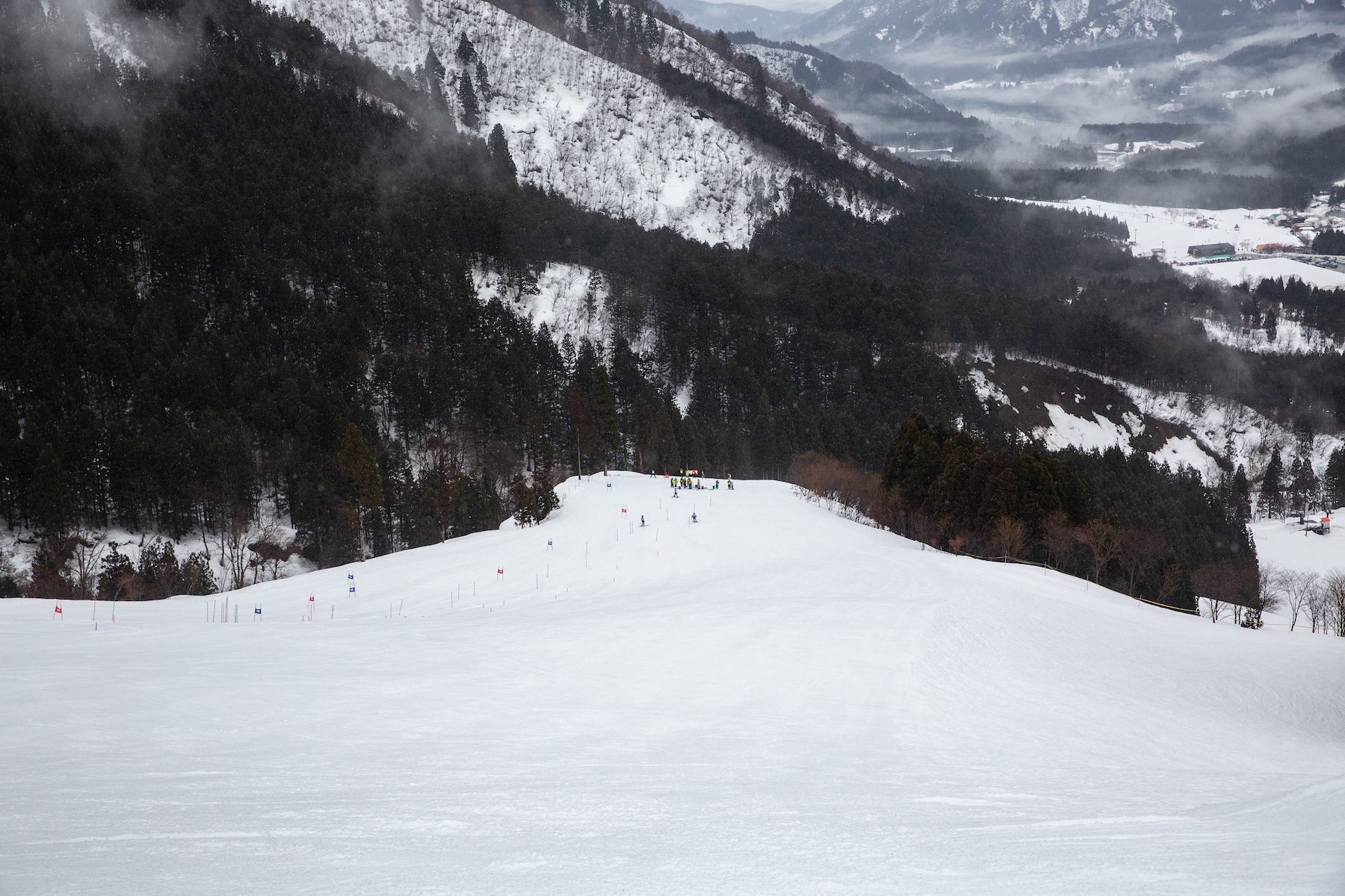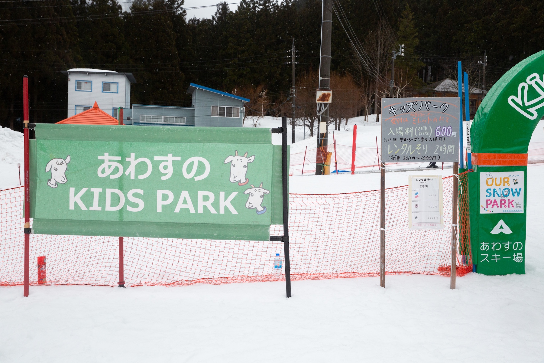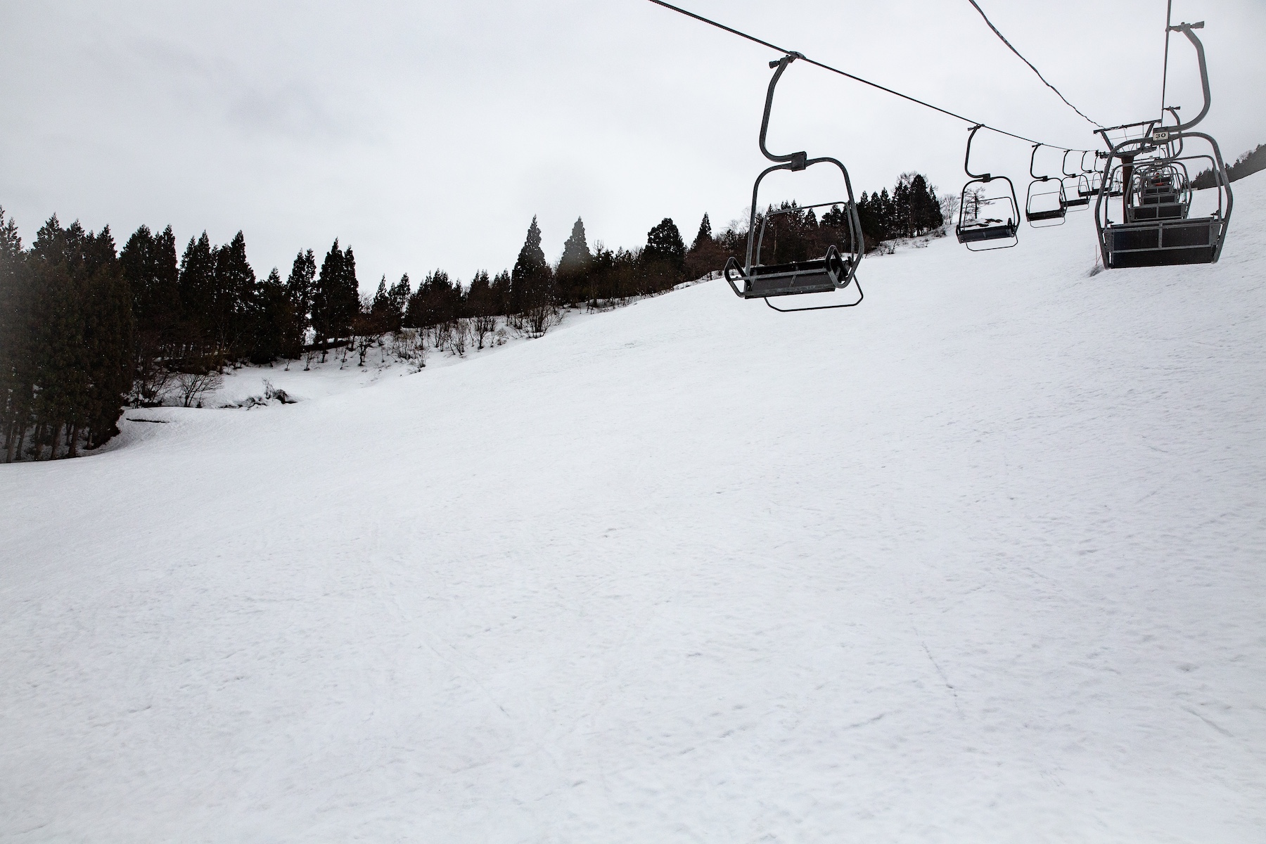 북알프스에서 흐르는 죠간지강을 따라 자동차를 달려 올라가자 오른쪽에 하얀 사면, 다테야마 산기슭 스키장이 보였다. 목표로 하는 목적지는 여기가 아니다. 현도 43호선을 한층 더 안쪽으로, 동츠키에 있는 「아와스의 스키장」이다. 구 오야마쵸 아소노의 죠간지강 좌안의 단언구 위, 해발 600m에 리프트가 2개 가는, 작은 로컬 스키장이다.