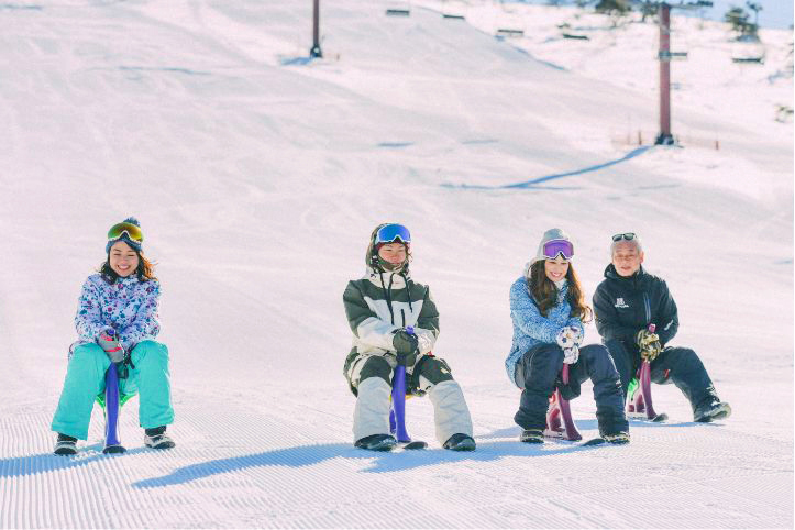 初心者の上達をサポートするスキースクールは常時開催。子ども向けの冬用キックバイクのレンタルや、家族で参加できる謎解きイベント・宝探しイベントなどファミリー向けコンテンツも充実している。