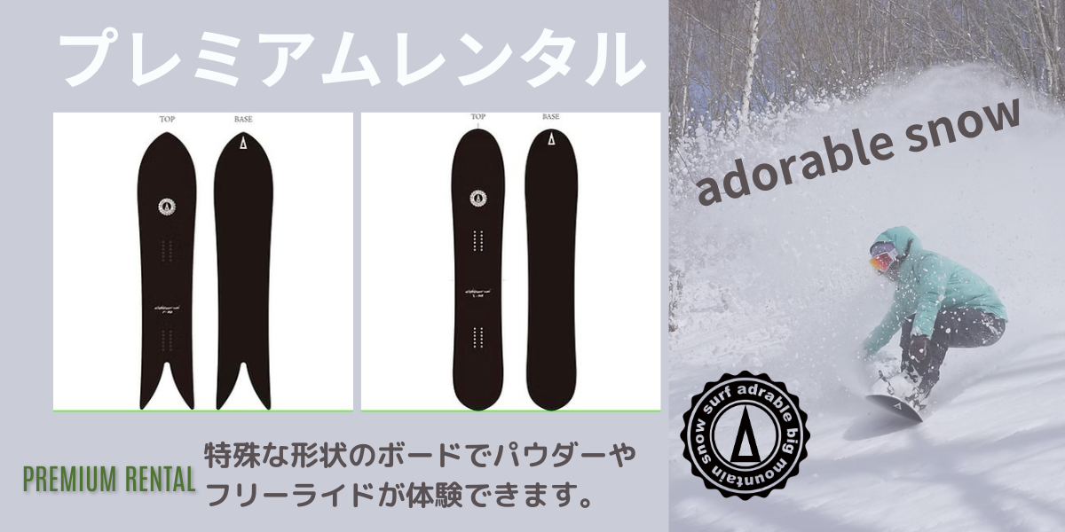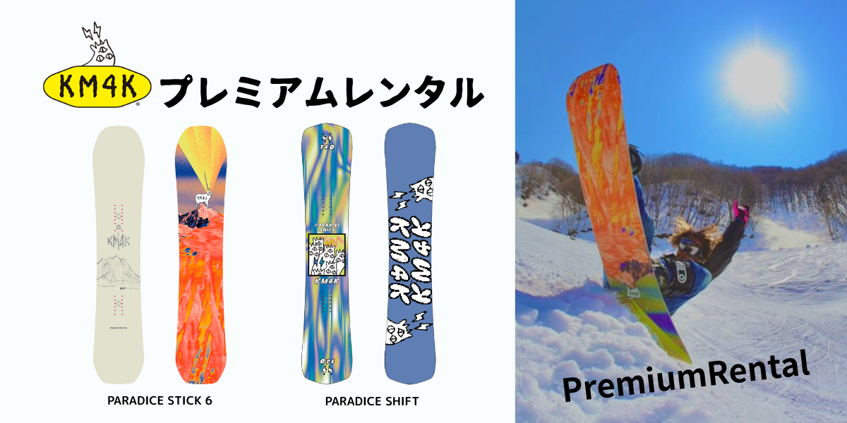 オリジナルのスノーボードウェアやグッズの販売を行う、プロスノーボーダーのオーナーが手掛ける「KM4K(カモシカ)」や、カービング、スノーサーフ、グラトリ、パークなど、オールラウンドに遊べるスノーボードを提供する、群馬県発のローカルスノーボードブランド「adrable snow(アドラブルスノー)」など、有名ブランドの最新モデルを複数取り揃えており、スタイルやその日のコンディションに合わせたライディングが可能。