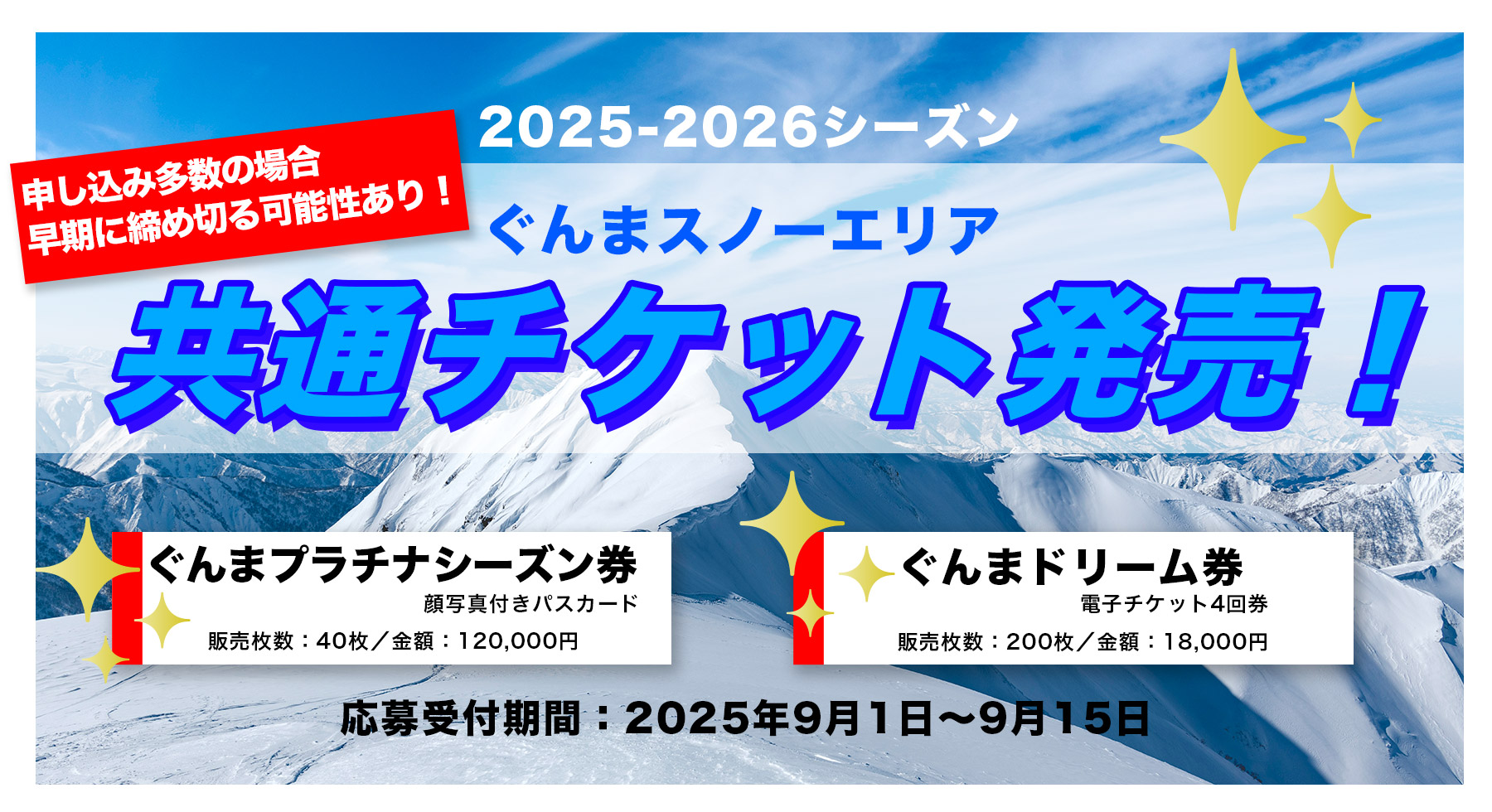 | ぐんまプラチナシーズン券 | 9/1〜15(応募受付終了後、抽選) | 120,000円 |