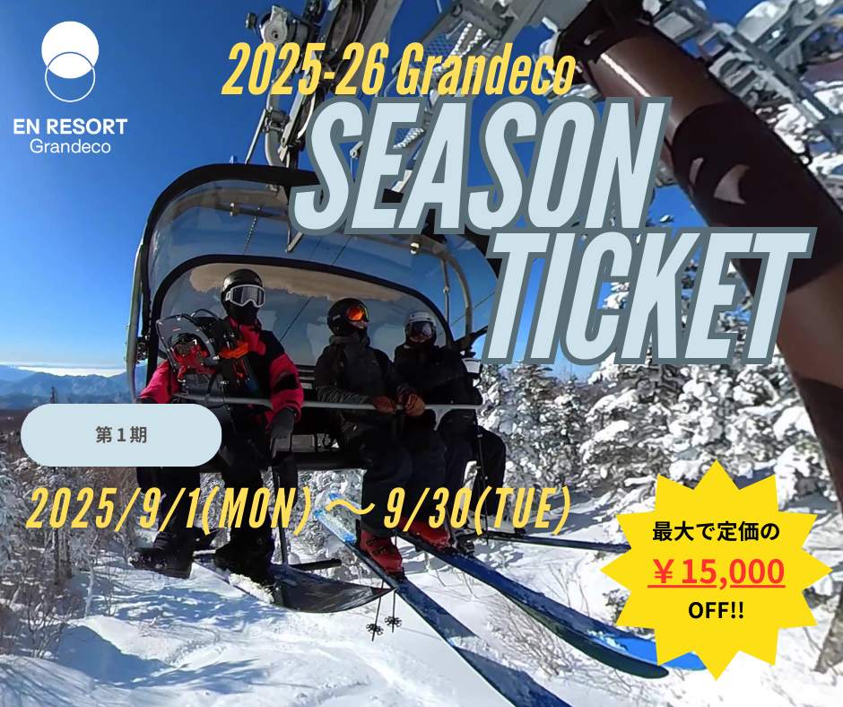 シーズン券は前シーズン終了前から販売を始めており、7月現在はセカンドセール中。料金は大人から中高生まで同一料金となっており、11月3日までは50,100円引きだ。