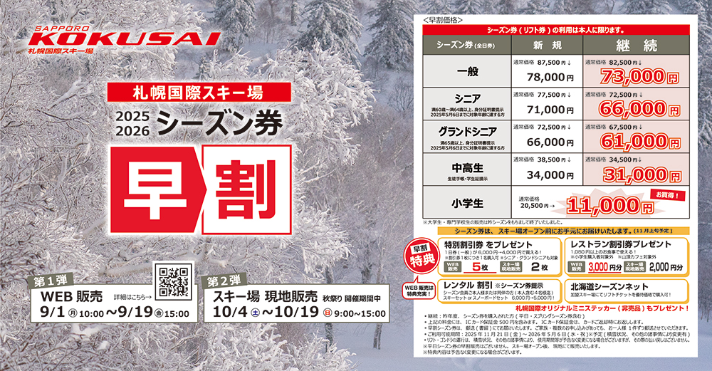 早割スキー場現地販売:2025年10月4日 (土)~10月19日(日)9:00〜15:00まで