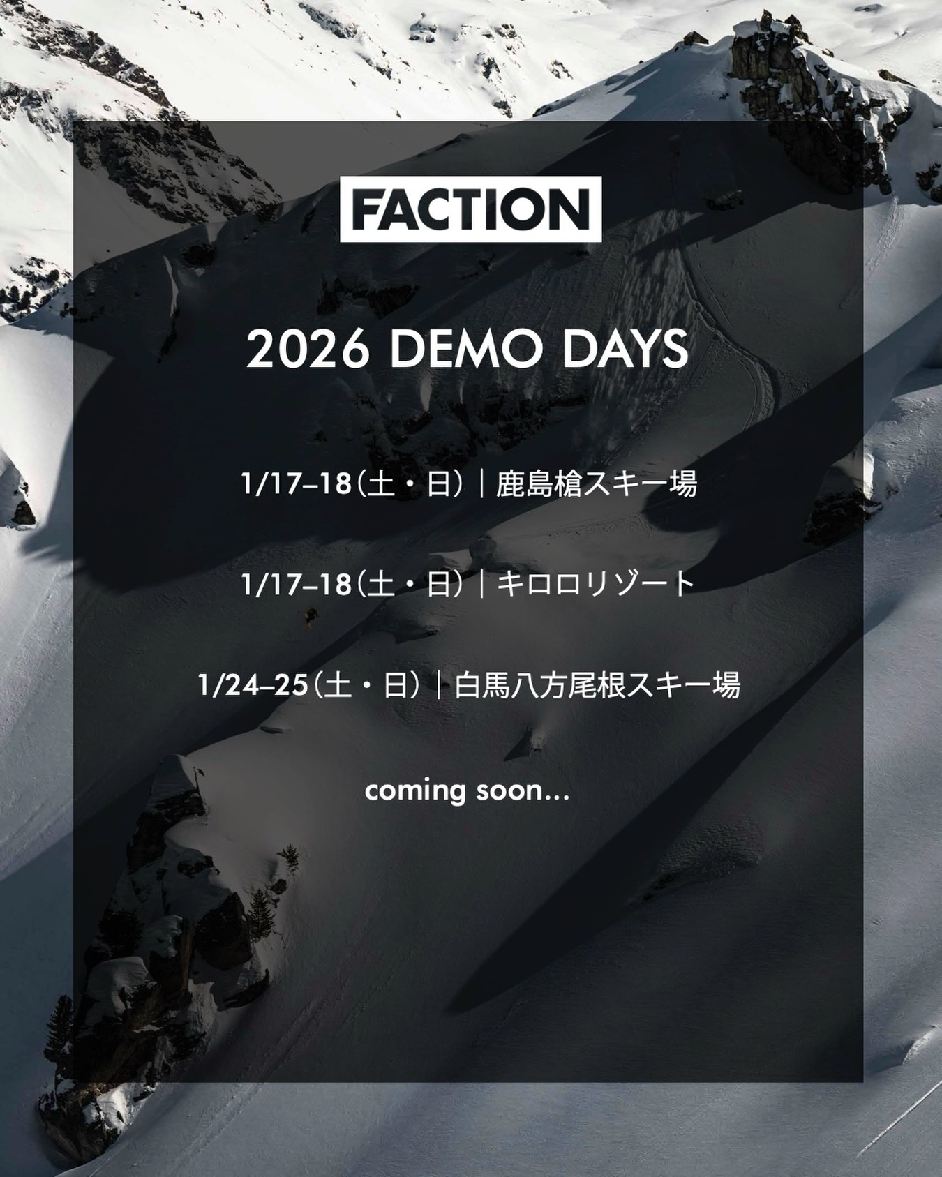 1月のFACTION試乗会スケジュールが@factionskis_japanで公開された。今年は北海道での試乗会も多数開催予定。詳細は順次アップデートのため、Instagramをチェックしよう。
