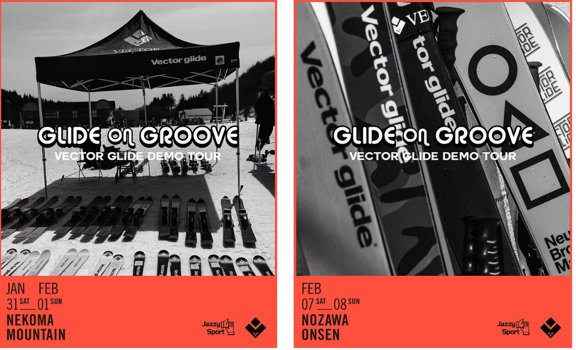 今シーズンのVECTOR GLIDE DEMO TOUR『GLIDE ON GROOVE』は、全国3会場に渡って開催。公式サイトでは「妥協なき物創りとターン性能を追求したスキー&スノーボードを試せる試乗イベント。音楽のグルーヴのように滑りを楽しむ」をテーマに、JAZZY SPORT とのコラボによる心地よい音楽とともに、新しいライディング体験をお届けします」と紹介されている。