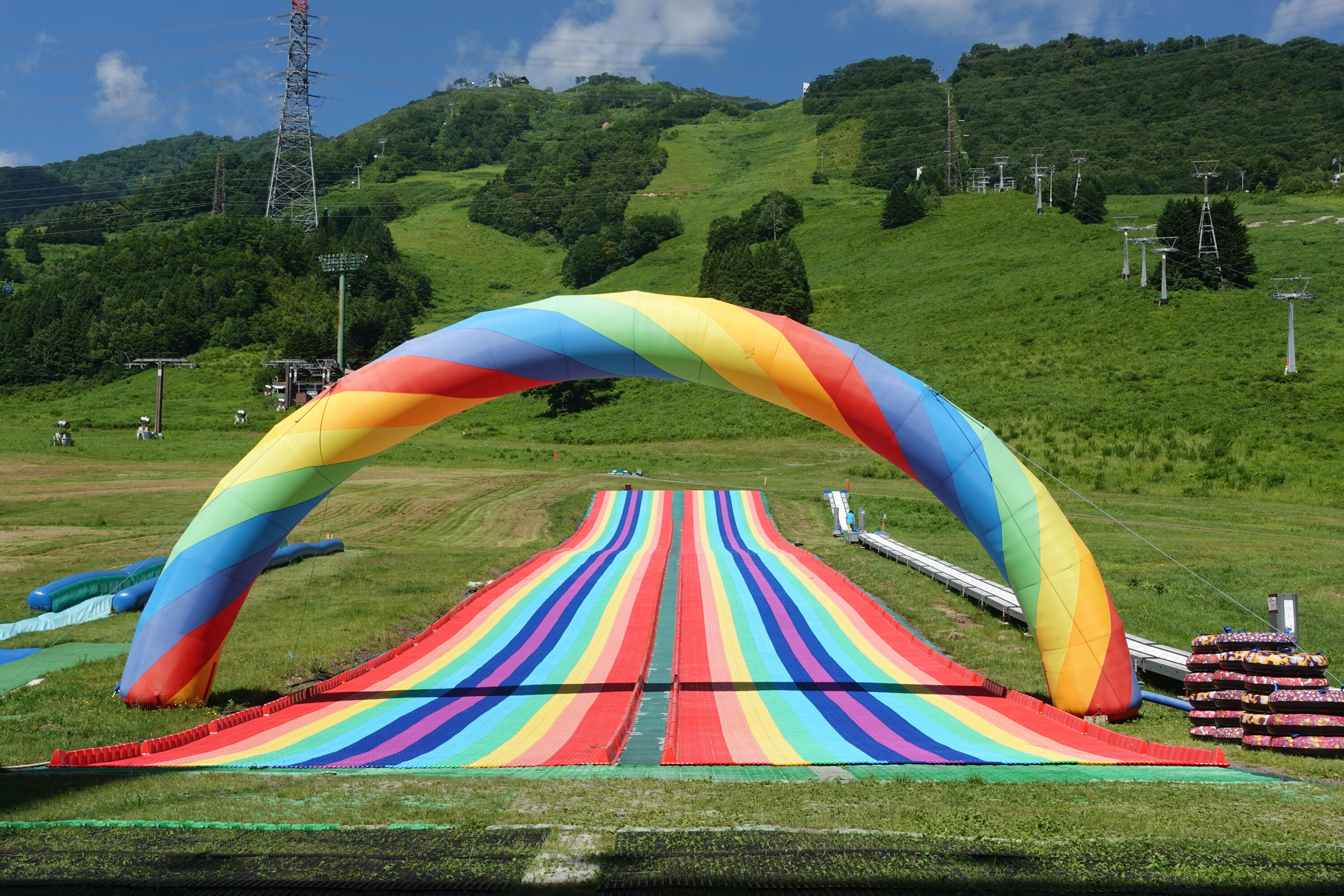 长达1100米的长滑道,即使只滑一次,也让人很有成就感,而且足够长,自然会促进进步。虽然坡度会逐渐变陡,但不像冬天那么快,所以很安心。