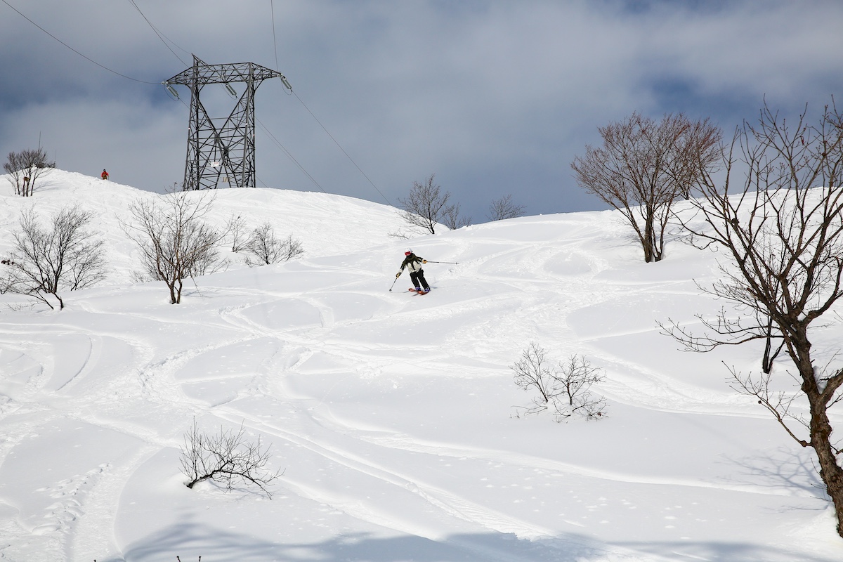 在粉雪上热身之后,就可以前往非人工管理的山地滑雪道了。这条滑雪道利用了旧滑雪场的雪坡。虽然是旧滑雪道,但它保留了自然地形,因此您可以体验到如同在野外滑雪般的乐趣。这条非人工管理的山地滑雪道是入门级的,适合那些想要尝试野外滑雪但又担心直接进入山区风险较高的人。