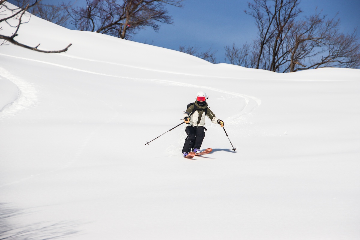 这次,滑雪三年、最近想尝试粉雪和野外滑雪的井田真美,在当地滑雪学校校长斋木真司的指导下进行了滑雪。
