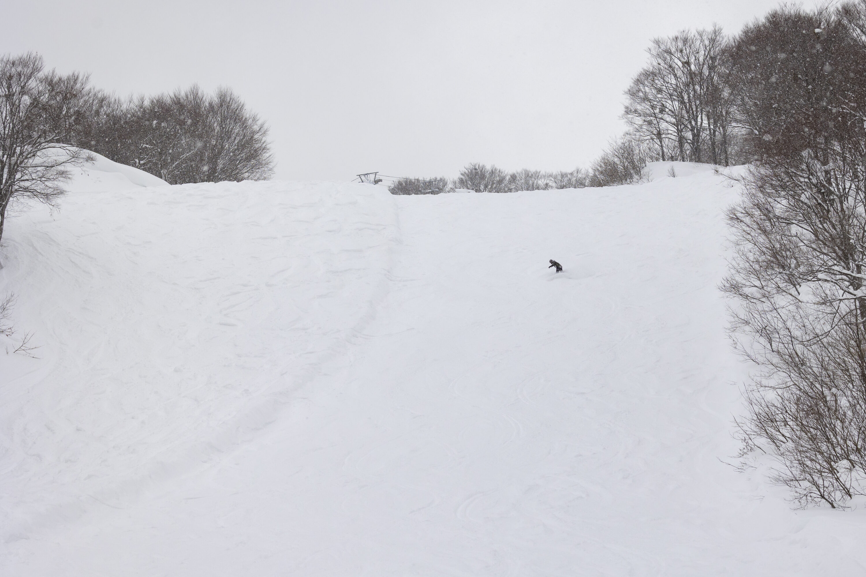 这条雪道面向高级滑雪者和部分中级滑雪者。降雪后,雪道并非故意保持未压雪状态。然而,雪道并非完全保持未压雪状态,而是根据雪道的宽度、坡度和积雪量,精心调整压雪方式。雪道不仅分为上下两段,还分为左右两段,形成独特的景观,压雪和未压雪区域以约1米的高度差并存。您可以尽情享受厚厚的粉雪,然后来到压雪区域稍作休息。雪道的设计旨在让您轻松享受滑雪乐趣。因此,对于想要体验粉雪的滑雪者来说,这里堪称完美之选。